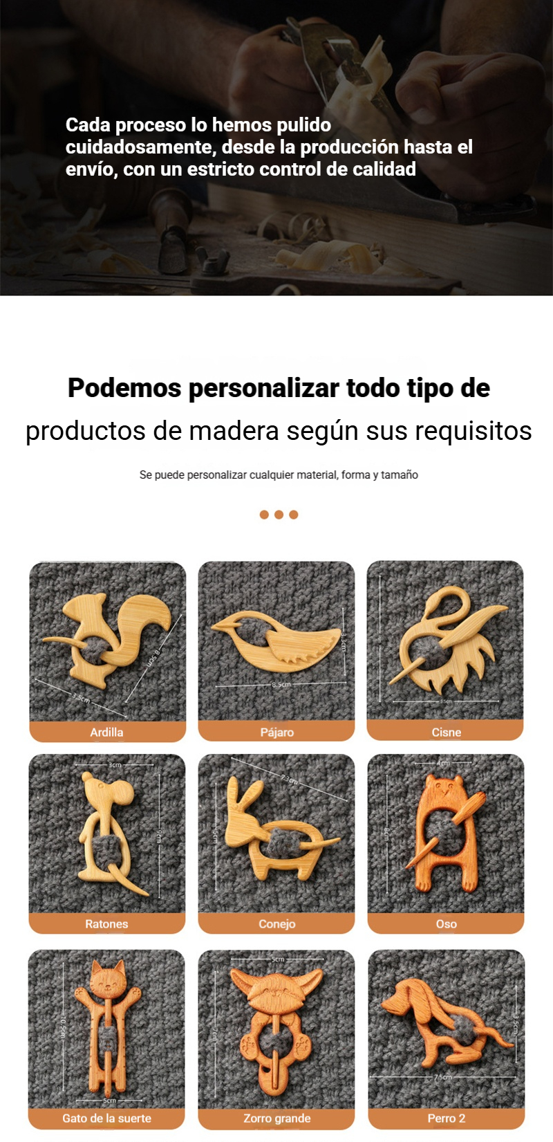 🎁(1 juego de 3)Broche de madera con forma de animal para regalar