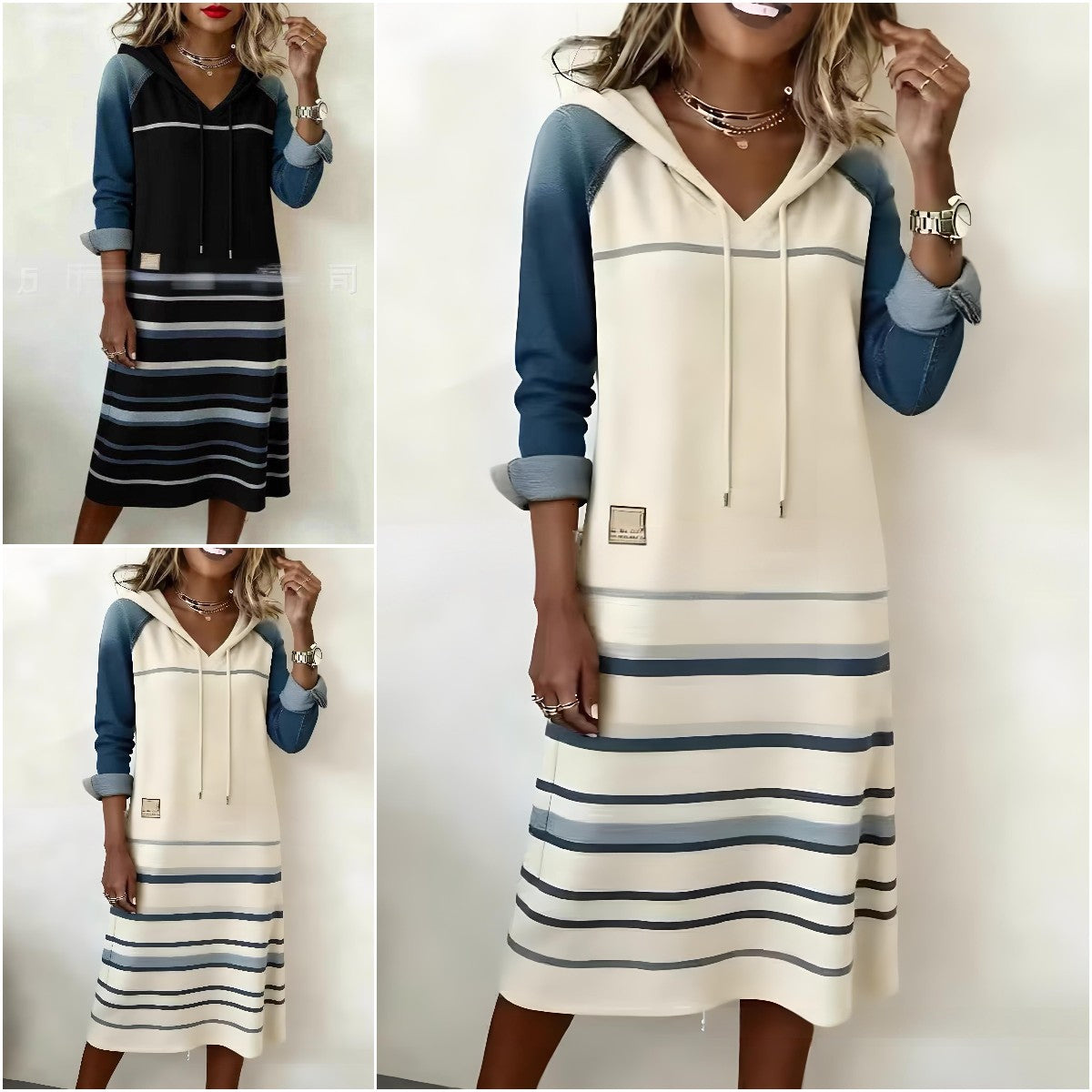 šŸ”„ć€S-3XL怑2025 Nowe, gorące bluzy z kapturem z denimu w bloki kolorów