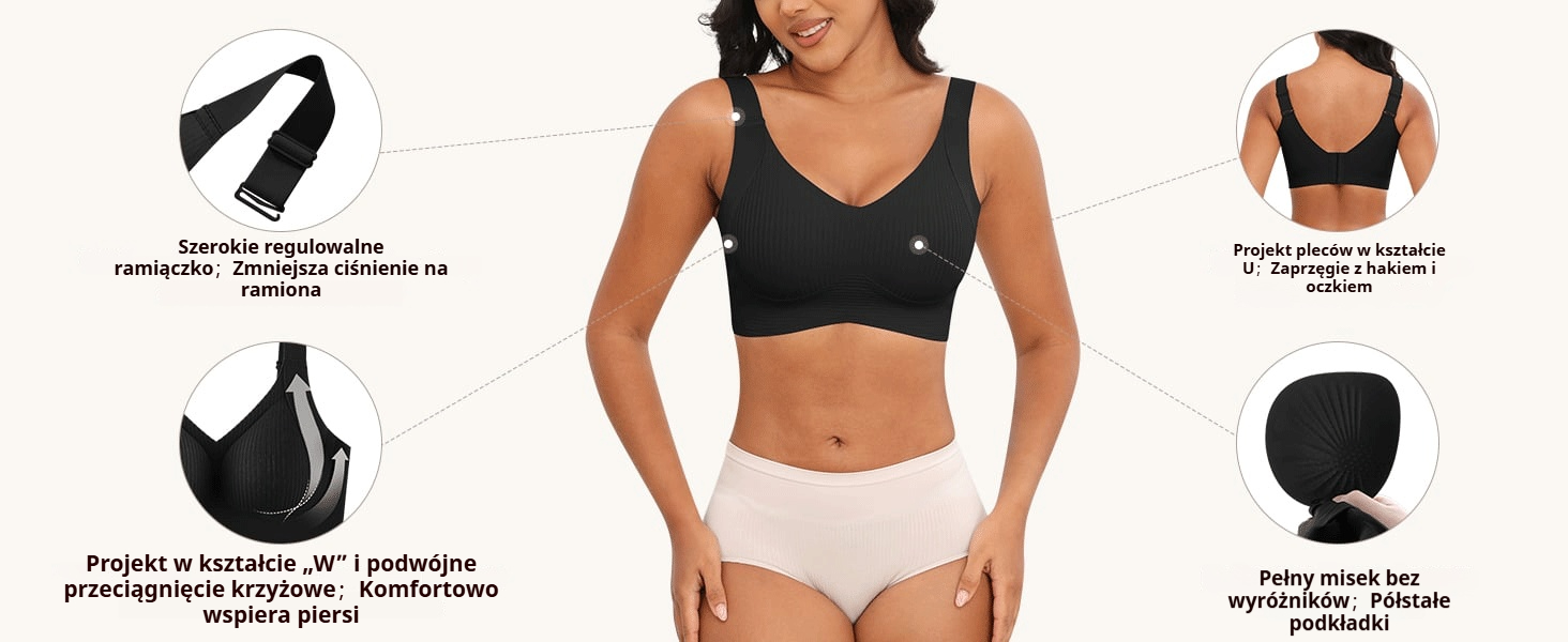 😍【Zestaw 4 szt.】Bezszwowy biustonosz bez fiszbin dla kobiet ❤️【40–95 kg】