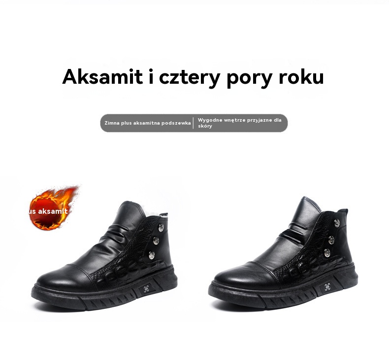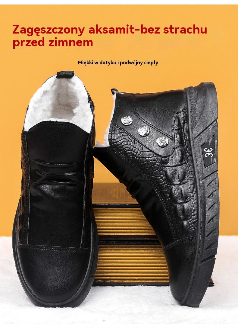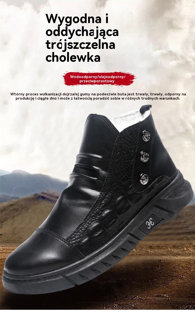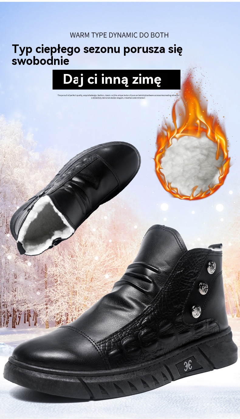 【39-44】⛄ Męskie skórzane śniegowce, skóra z bawełnianą podszewką, ciepłe, antypoślizgowe, wodoodporne, wygodne i uniwersalne.