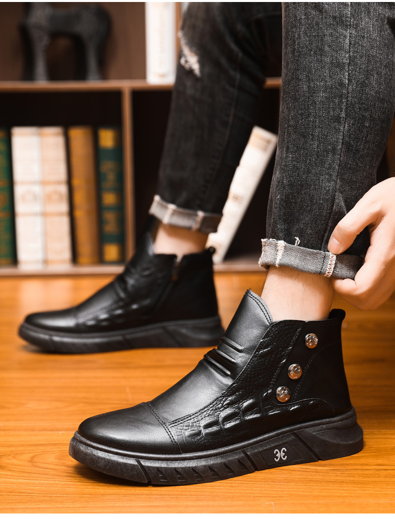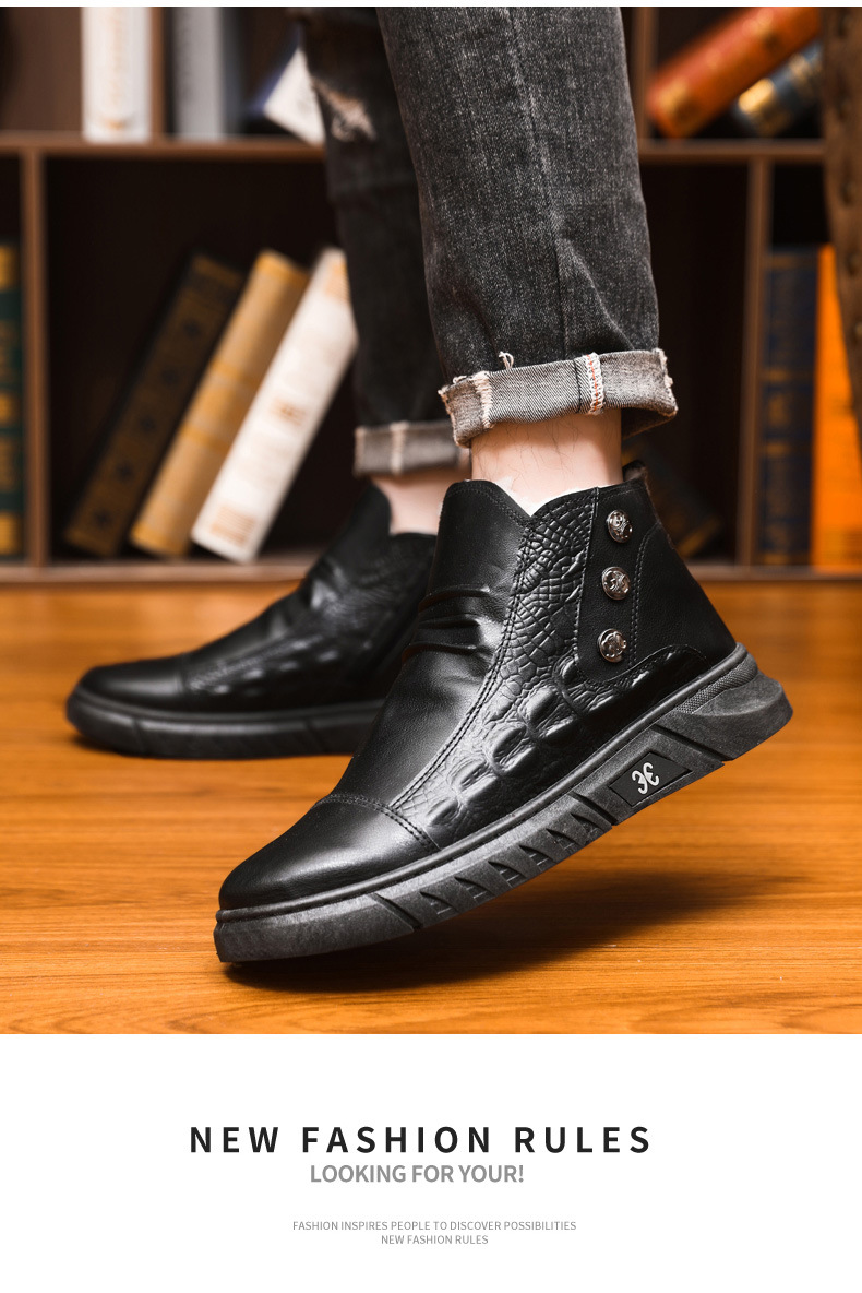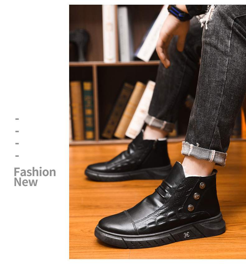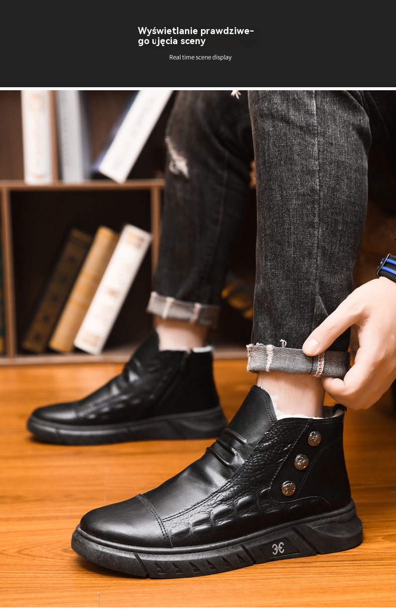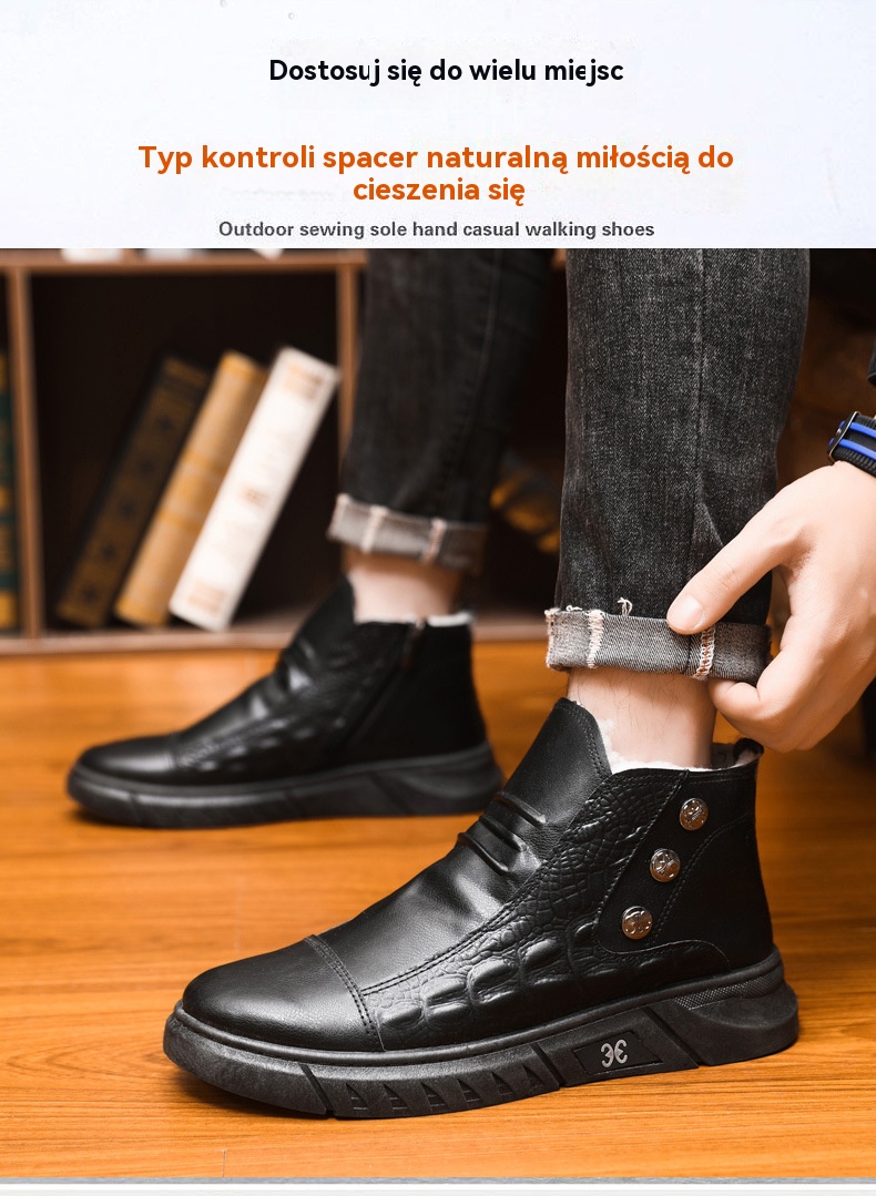 【39-44】⛄ Męskie skórzane śniegowce, skóra z bawełnianą podszewką, ciepłe, antypoślizgowe, wodoodporne, wygodne i uniwersalne.